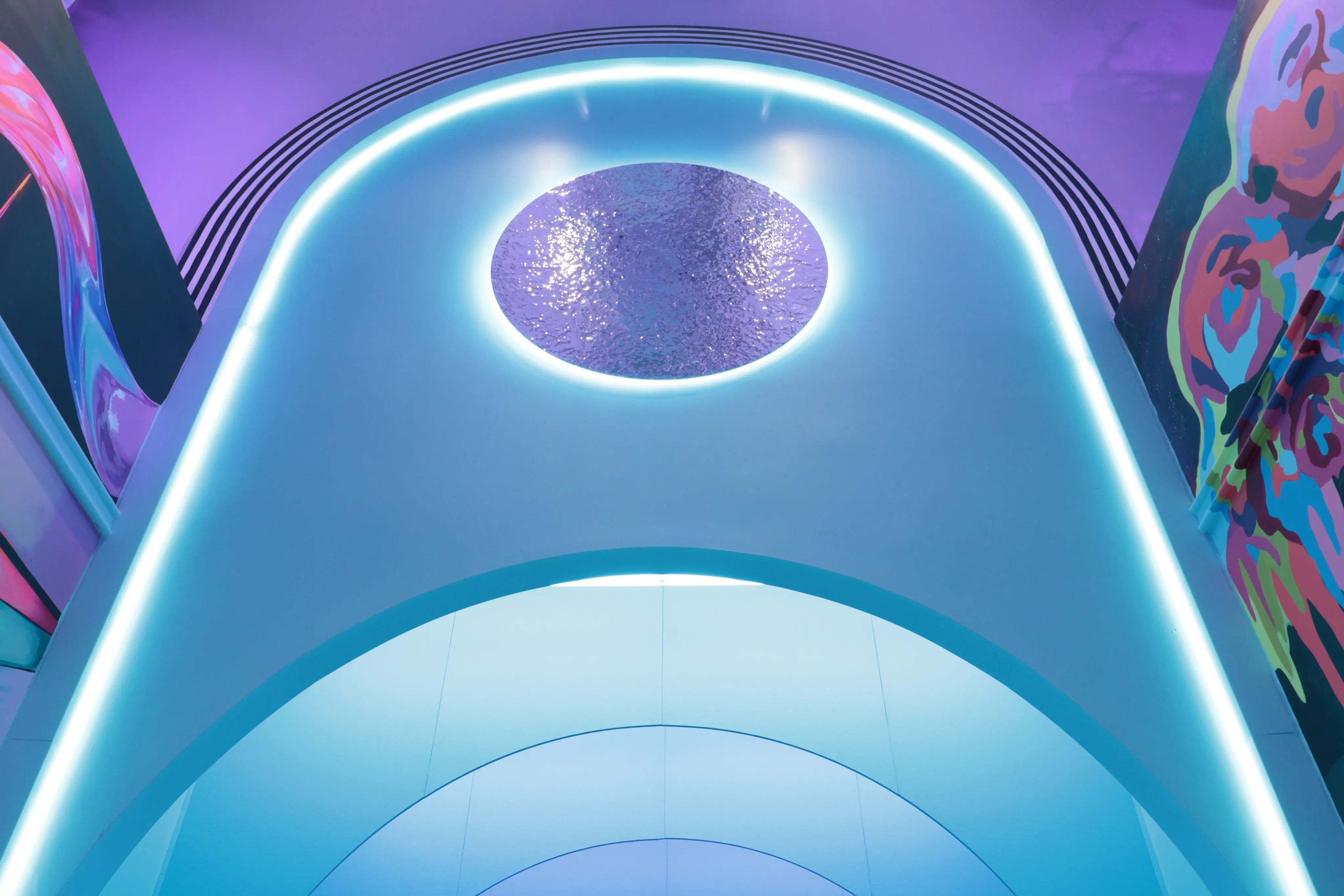 Custom-designed arches bring immersive depth and vibrant color transitions to Meow Wolf’s Radio Tave exhibit in Houston, enhancing the interactive experience.