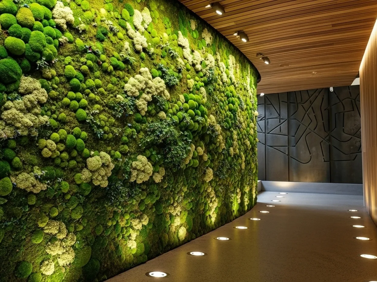 This approach is effective in open-plan offices, hospitality lounges, or common areas where designers want to create a uniform, immersive backdrop. The result is an uninterrupted green surface that reduces visual noise while adding depth and consistency to high-traffic zones.