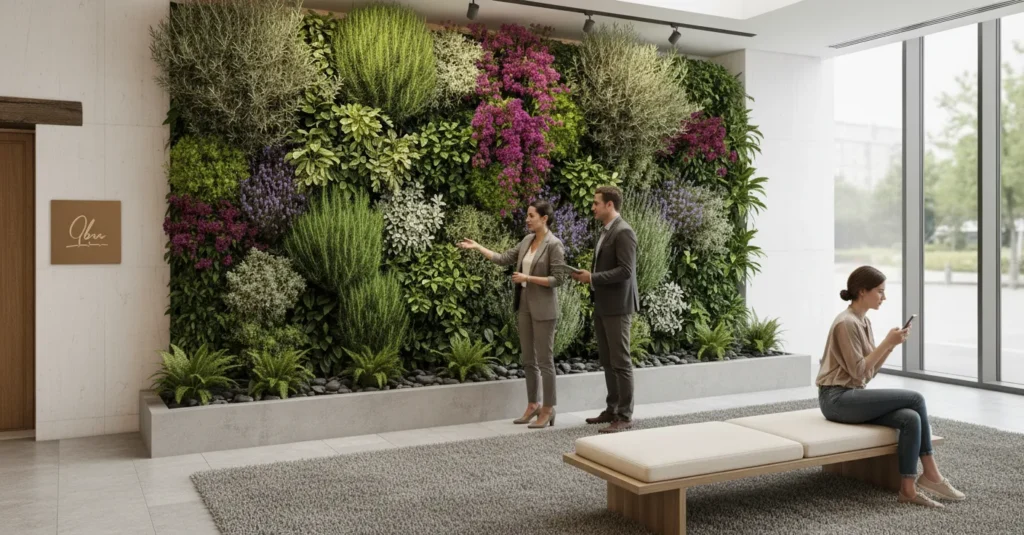 | Acoustic Substrate | Include sound-absorptive materials behind the greenery to improve comfort and speech clarity in open or high-traffic spaces. |