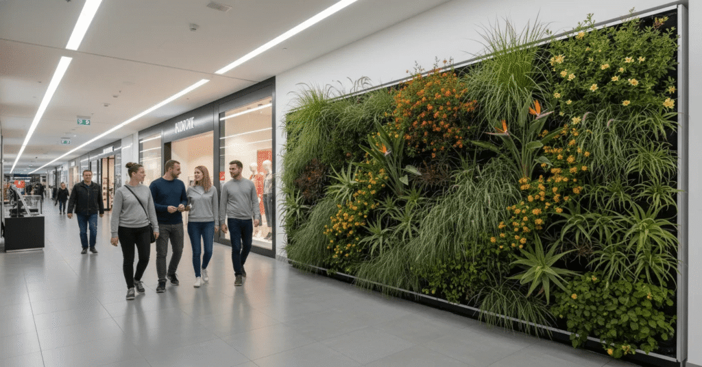 Living walls are installed in a wide range of architectural contexts where vertical surfaces are used to support vegetation systems. These installations may appear on building façades, interior partitions, atrium walls, and freestanding structural elements within commercial developments.