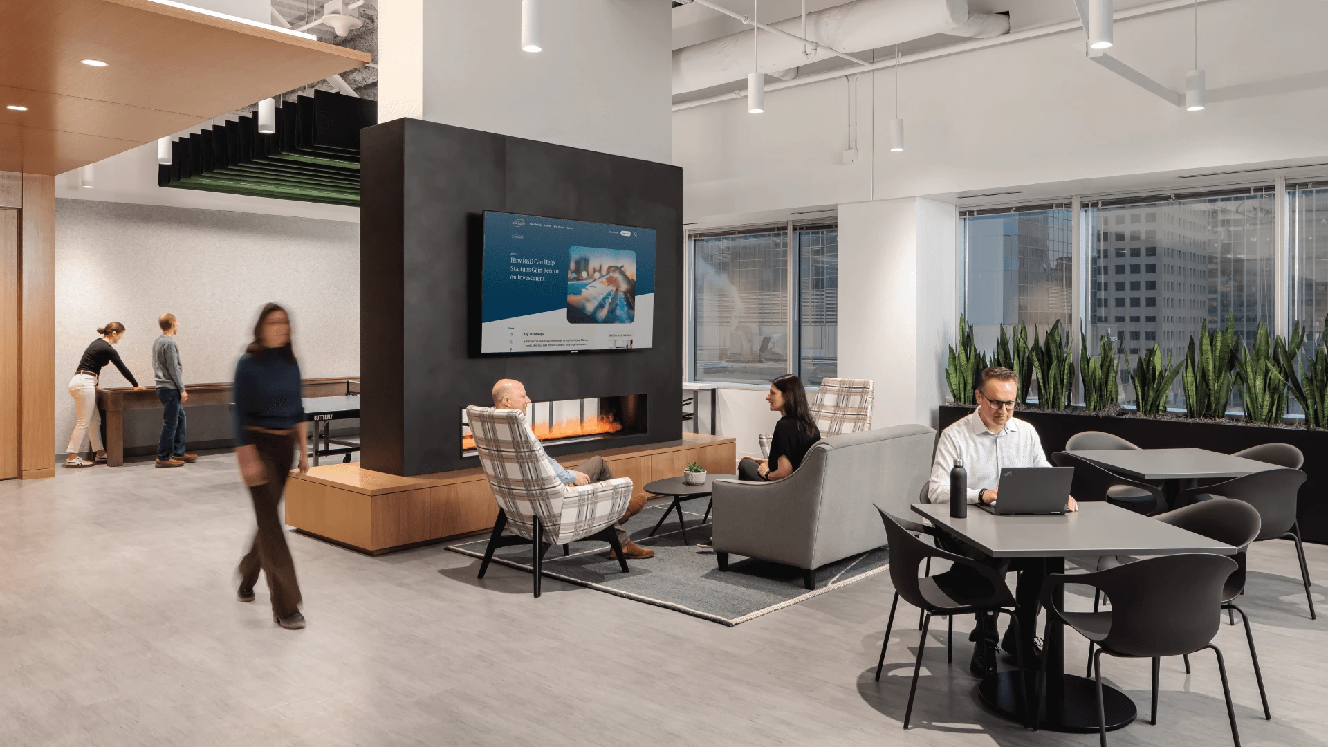 Eide BaillyBy Sanjay Roy / January 21, 2025 Back to Projects Eide Bailly Draped wool felt baffles add a soft and luxurious touch overhead for our Minneapolis neighbors. LocationMinneapolis, MinnesotaDesignerHGA