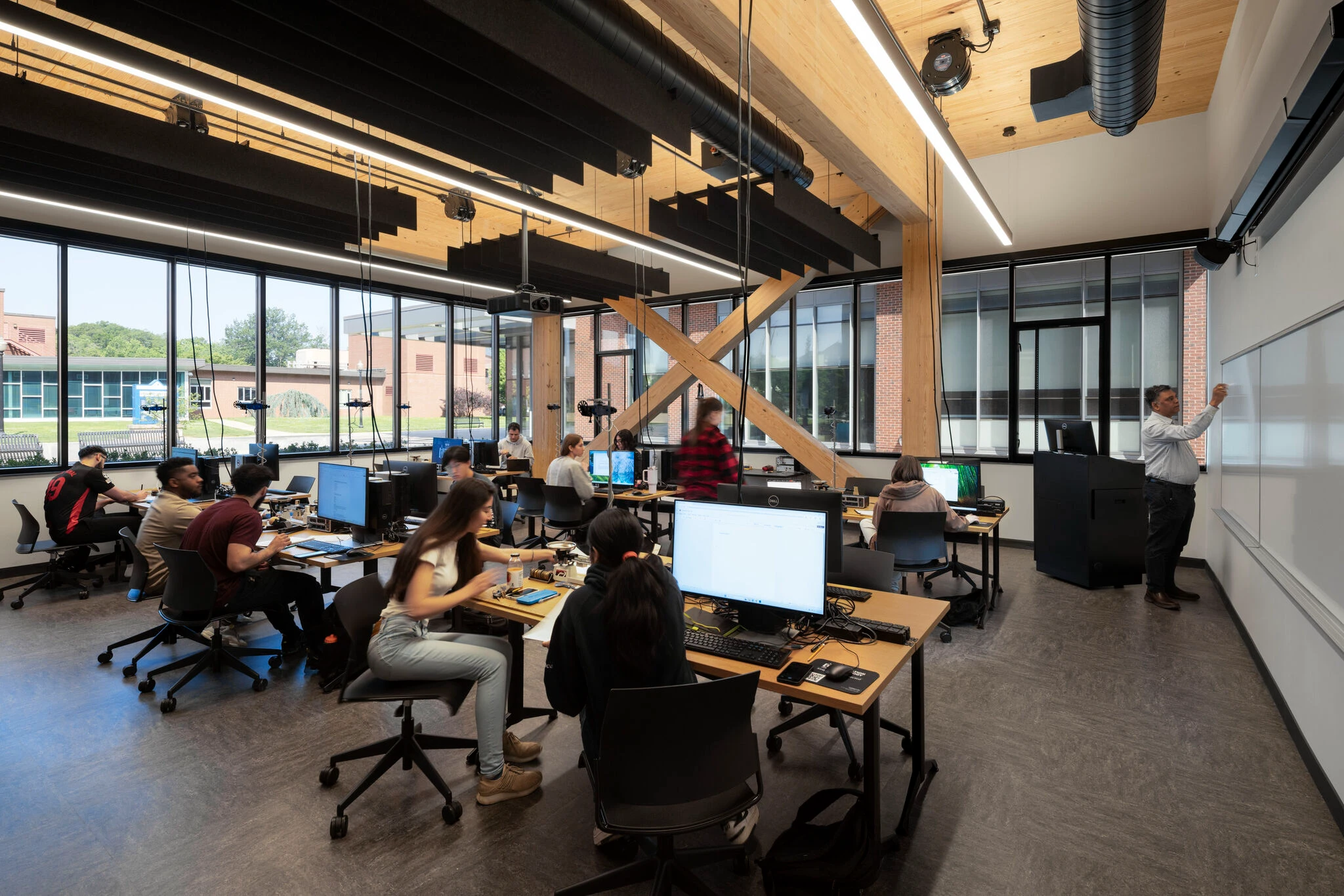 Elihu Burritt LibraryBy Sanjay Roy / January 10, 2025 Back to Projects Elihu Burritt Library Straight baffles absorb sound over Elihu Burritt Library at Central Connecticut State University LocationNew Britain, CTDesignerPerkins Eastman