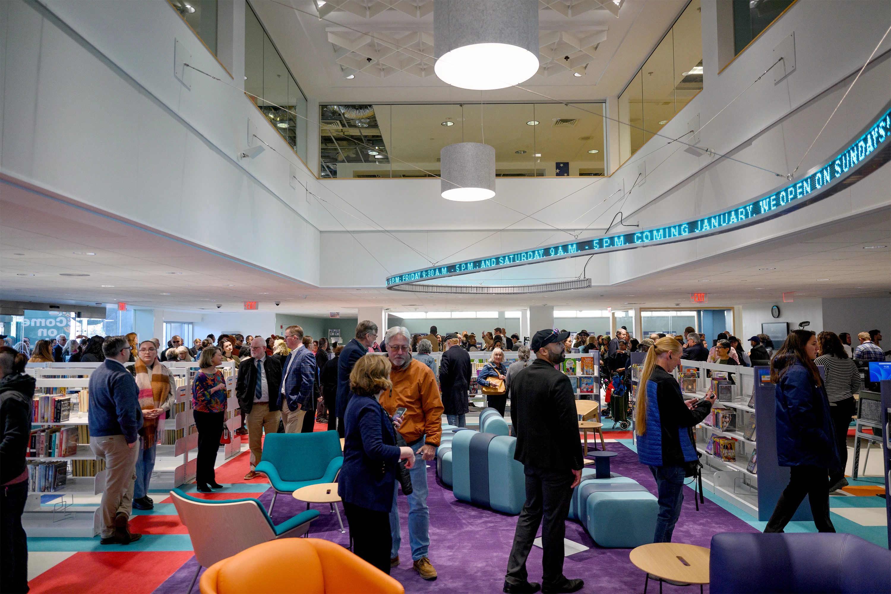 Hartford Public LibraryBy Angad Yadav / March 26, 2026 Back to Projects Hartford Public Library This high-performance ceiling feature utilizes PoshFelt® Profile Surfaces to transform the overhead plane into a sophisticated acoustic filter that balances vibrant, modern aesthetics with essential sound dampening for the library’s open public spaces. LocationHartford, ConnecticutDesignerMargaret Sullivan Studio