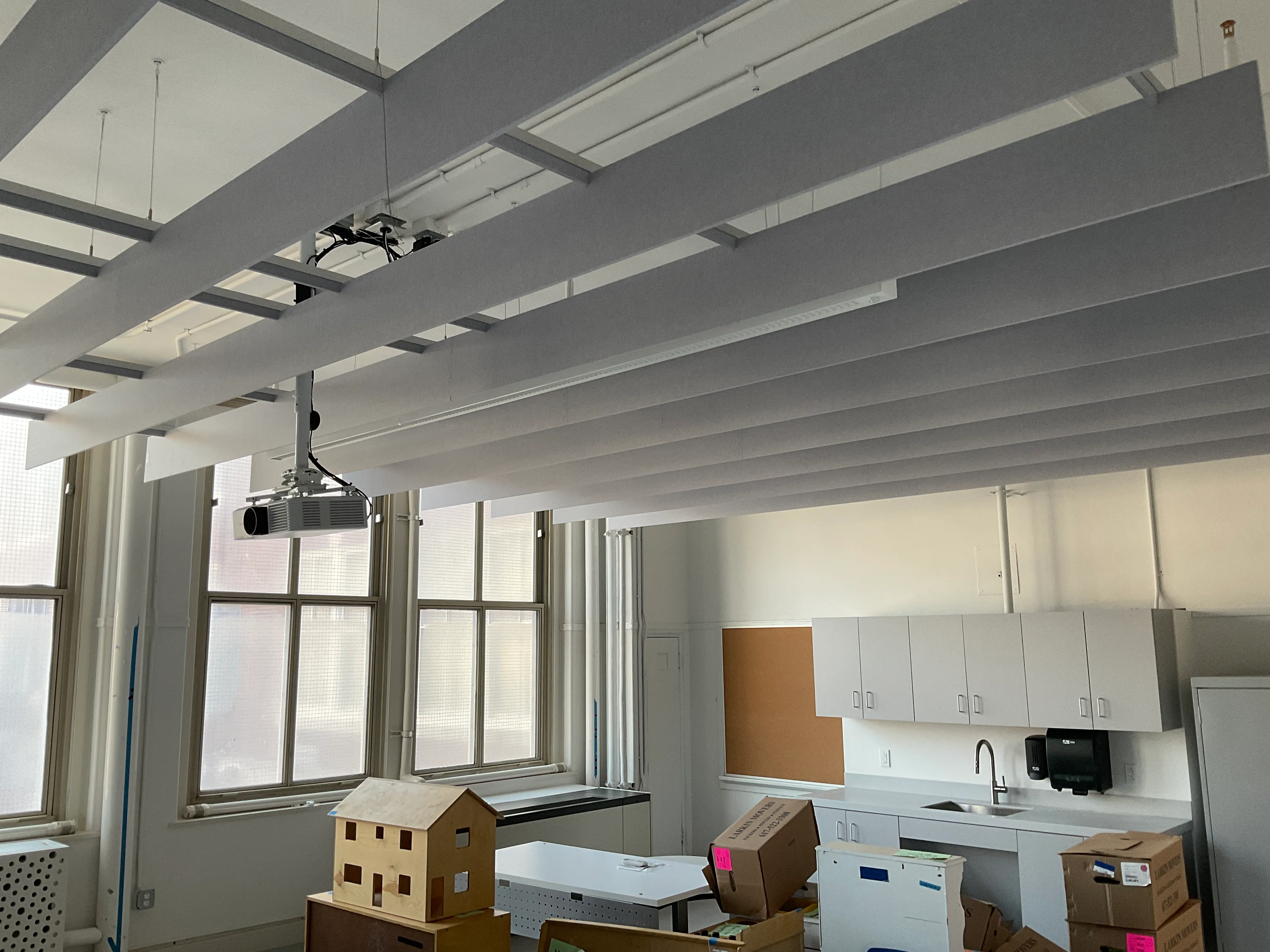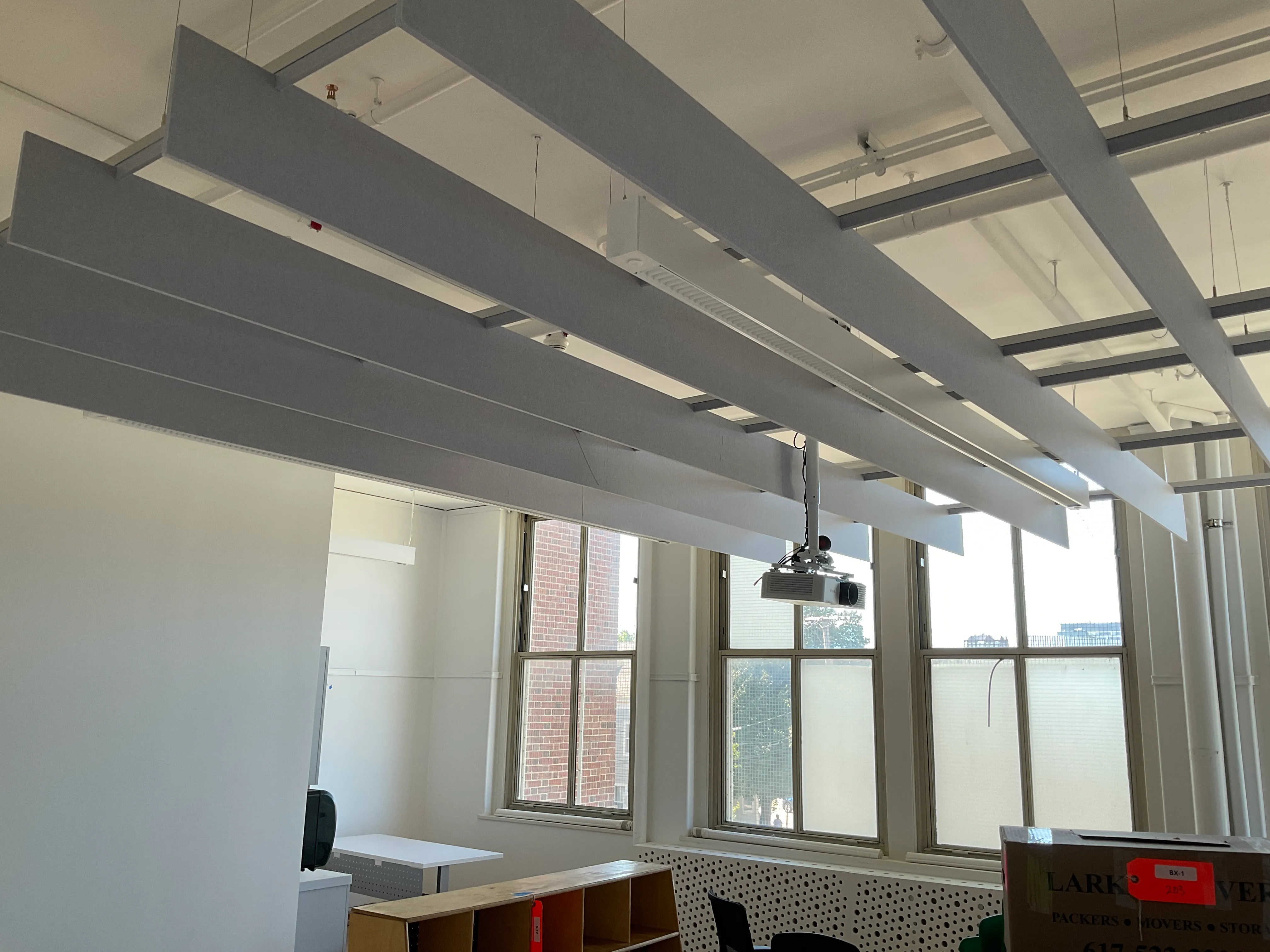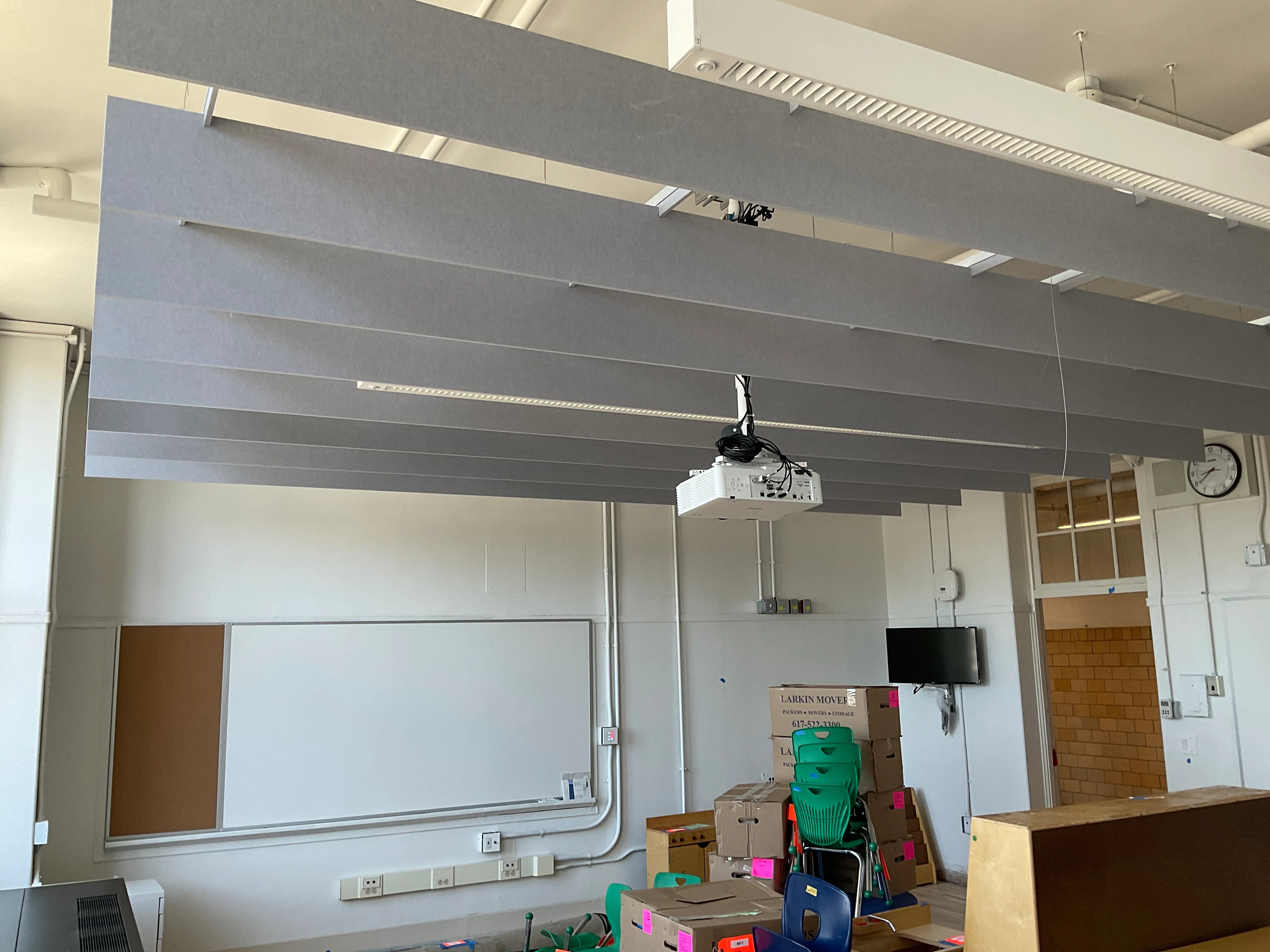 Horace Mann RelocationBy Sanjay Roy / January 10, 2025 Back to Projects Horace Mann Relocation Straight ceiling baffles improve focus and attention in the classroom setting by absorbing excess reverberations. LocationBoston, MassachusettsDesignerMachado and Silvetti Associates Inc.