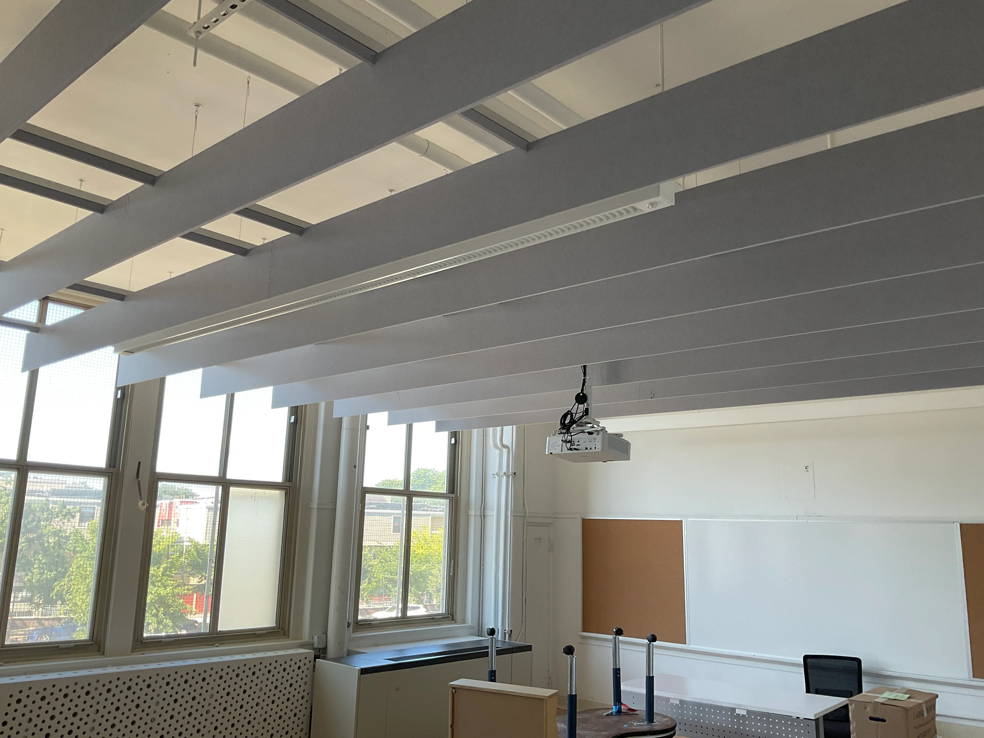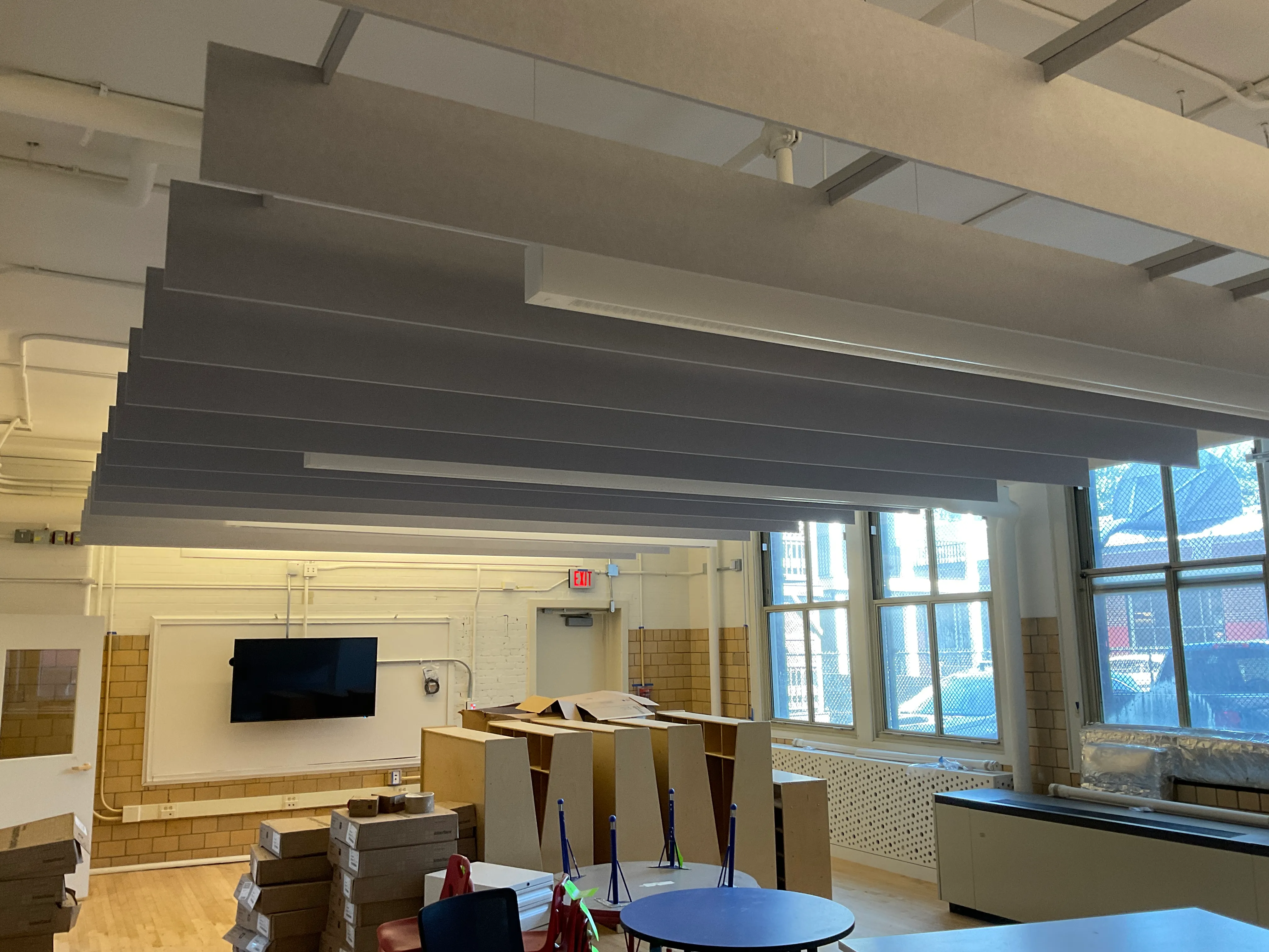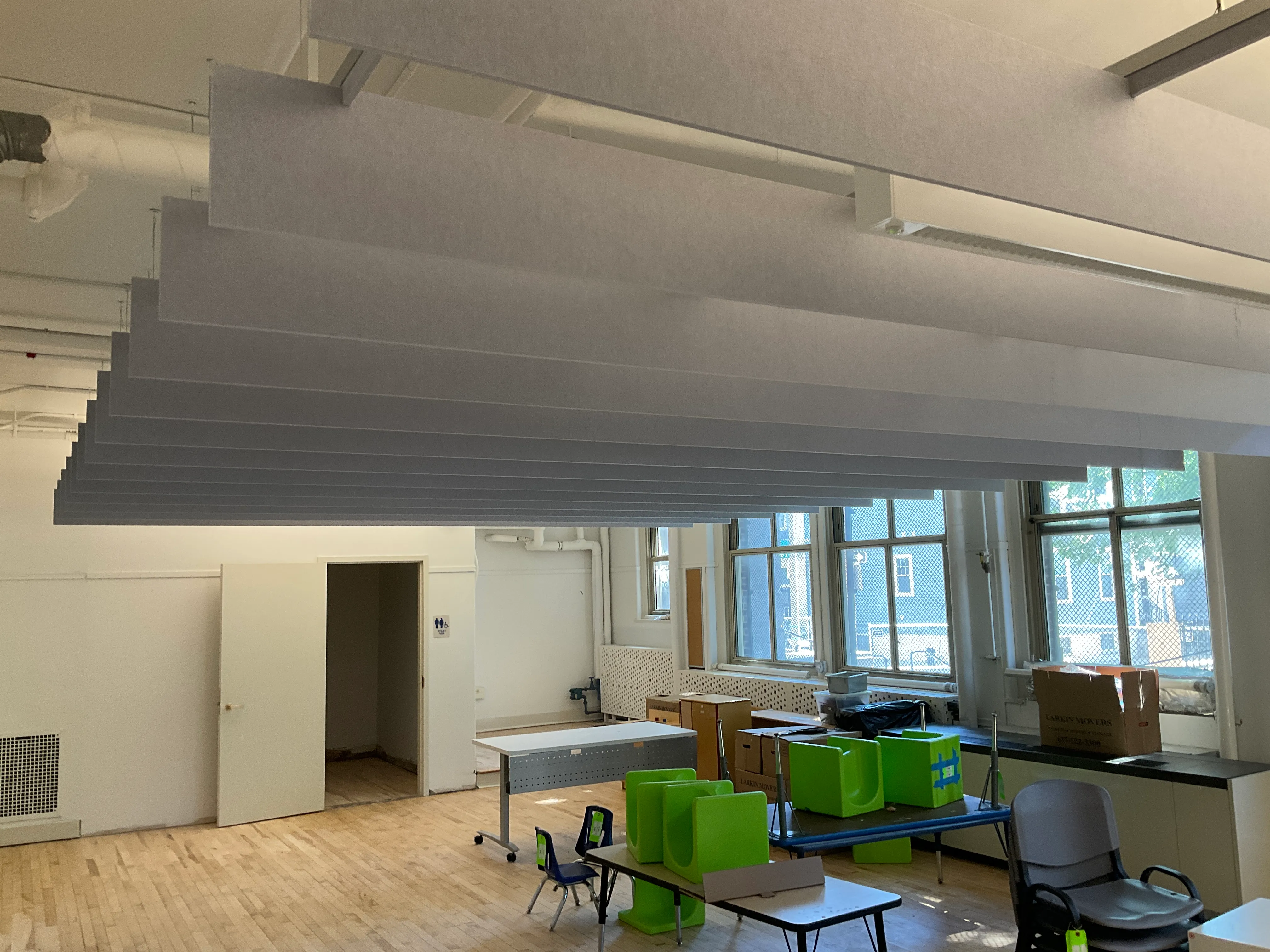 Horace Mann RelocationBy Sanjay Roy / January 10, 2025 Back to Projects Horace Mann Relocation Straight ceiling baffles improve focus and attention in the classroom setting by absorbing excess reverberations. LocationBoston, MassachusettsDesignerMachado and Silvetti Associates Inc.