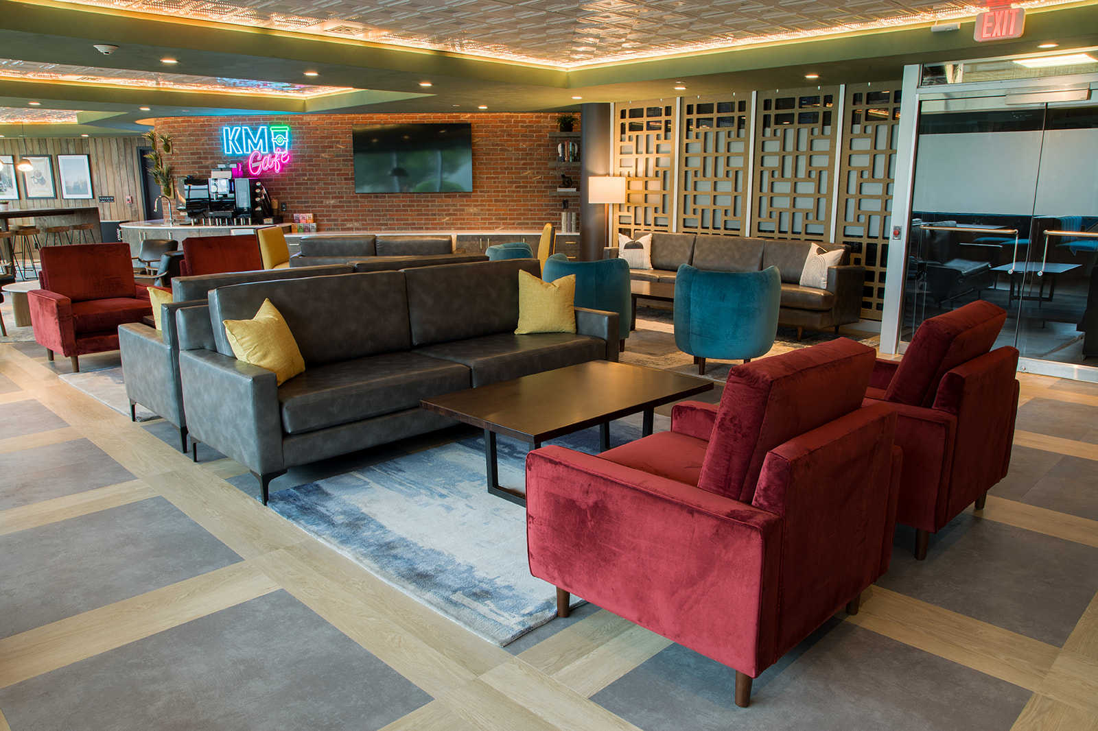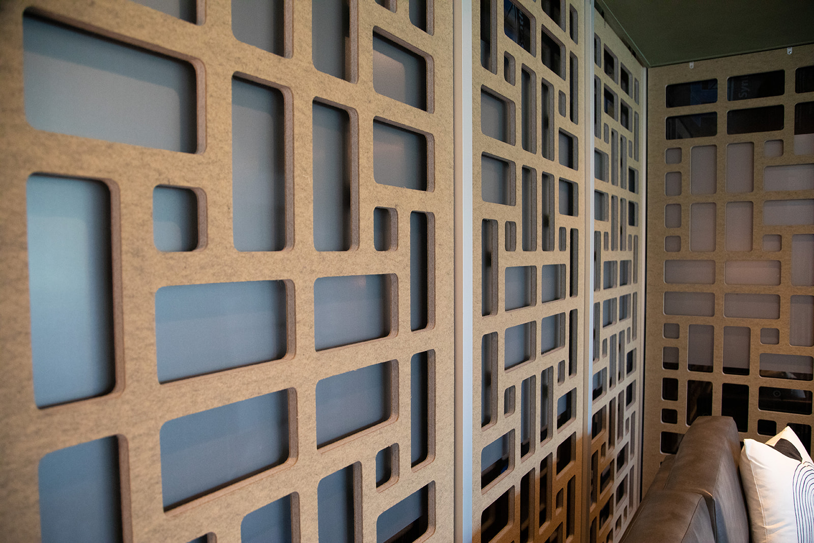 Custom carved wool felt dividers create an elegant and plush addition to this corporate headquarter’s café