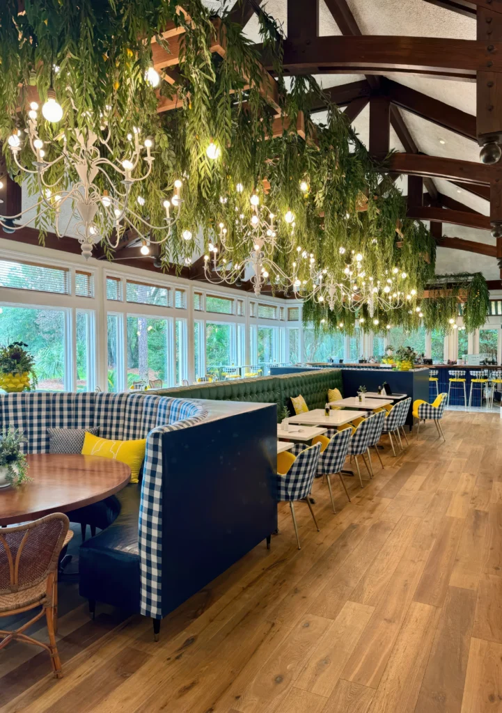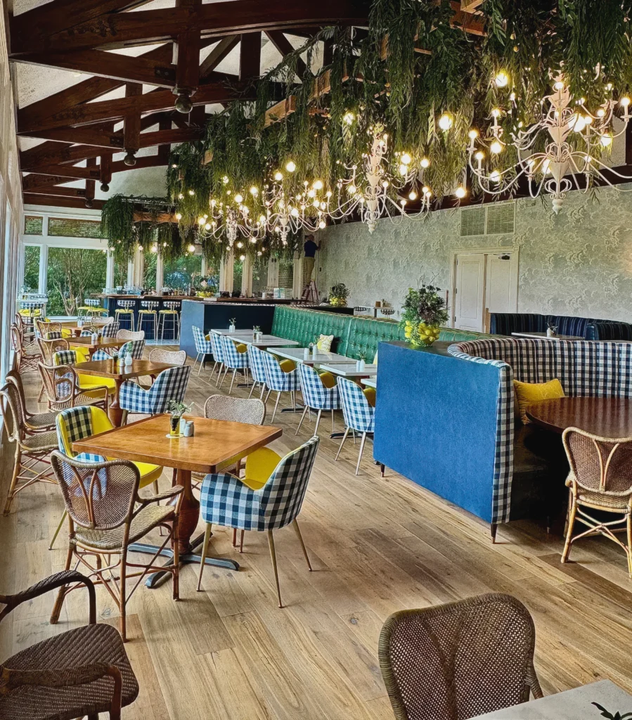 Osteria OakridgeBy Sanjay Roy / December 18, 2025 Back to Projects Osteria Oakridge Wood-textured cube cloud ceilings with integrated greenery enhance Osteria Oakridge’s Tuscan-inspired atmosphere, softening acoustics and reinforcing a warm, biophilic dining experience reminiscent of an open-air countryside trattoria. LocationSavannah, GeorgiaDesignerEvelyn Scott, FOWD Interiors