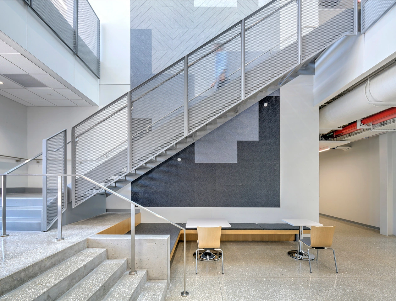 Robert W. Plaster Center for Advanced ManufacturingBy Angad Yadav / March 16, 2026 Back to Projects Robert W. Plaster Center for Advanced Manufacturing At the Robert W. Plaster Center for Advanced Manufacturing at Ozarks Technical Community College (OTC), Carved Surfaces acoustic wall panels were installed to improve sound absorption while introducing a bold geometric design element within the open interior space. LocationSpringfield, MissouriArchitectDake Wells Architecture